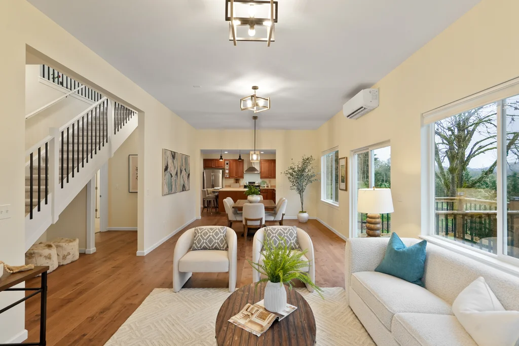 Every detail has been carefully attended to—new light fixtures, fresh interior paint, updated trim and doors, and vinyl windows create a crisp, modern look while preserving the farmhouse charm. Two mini-splits provide efficient heating and cooling year-round, ensuring comfort in every season.